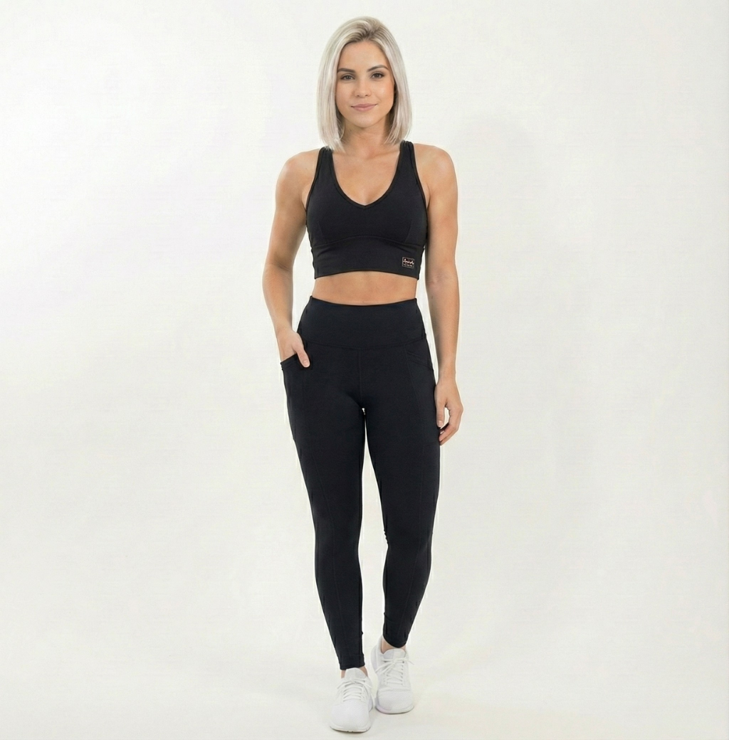 Legging com bolso em Supplex de Alta Compressão (87% poliamida e 13% elastano) e FPS+50. Garante conforto e performance, elasticidade, equilíbrio térmico e proteção da musculatura. Fabricação nacional.